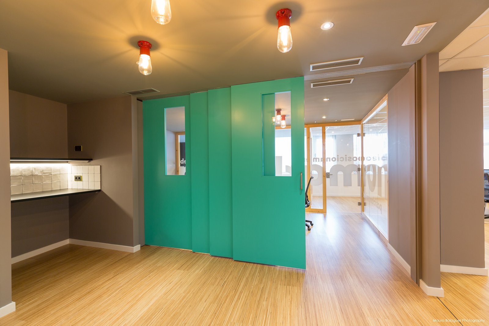 Nos encargaron el diseño de estas oficinas para una empresa del sector creativo que forma parte de un grupo de empresas con una arquitectura corporativa definida: parquet de bambú, mamparas de pino, mesas tipo “bench”, suspensiones de led.